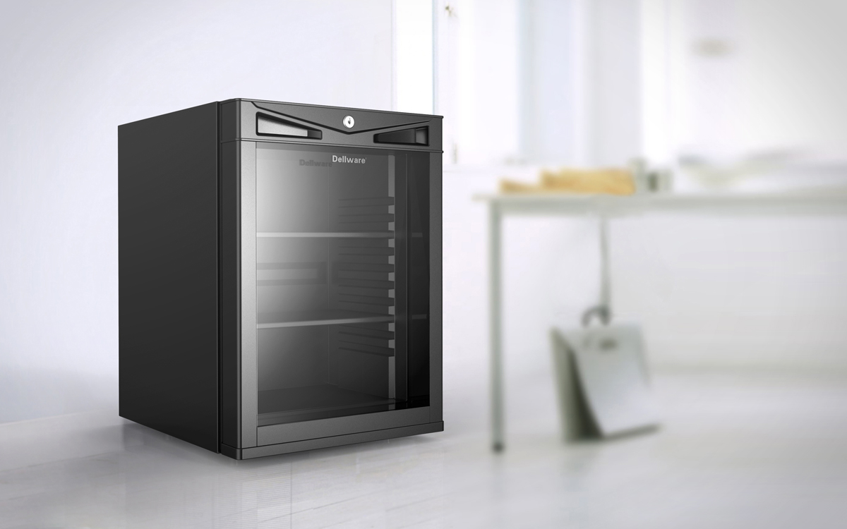 • 色彩視覺精致感:采用通體啞光黑 + 金屬銀邊框的撞色搭配,啞光黑箱體傳遞沉穩(wěn)高端的質(zhì)感,金屬銀邊框勾勒輪廓,提升視覺精致度;透明鋼化玻璃門既保證內(nèi)部存儲可視化,又避免箱體的封閉感,在明亮空間中極具整潔感,傳遞 “高效、可靠” 的品牌認(rèn)知;